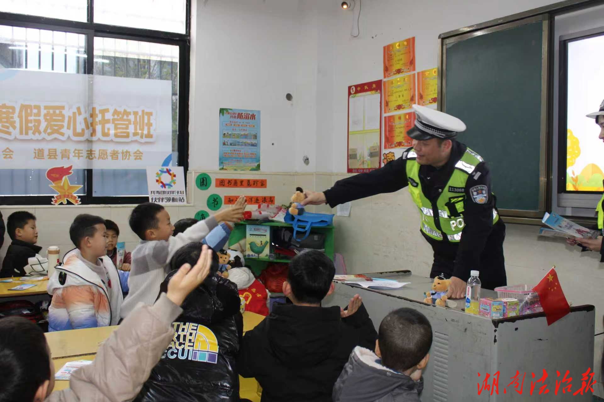 湖南法治報(bào)訊(通訊員 陽(yáng)朝秀 唐黎明)1月30日,道縣公安局交警大隊(duì)聯(lián)合團(tuán)縣委,深入道縣第四小學(xué)“伙伴計(jì)劃”愛(ài)心托管班,開(kāi)展交通安全警示教育活動(dòng),為孩子們送上一份特殊的“安全大禮”。